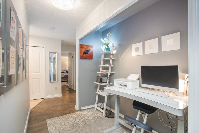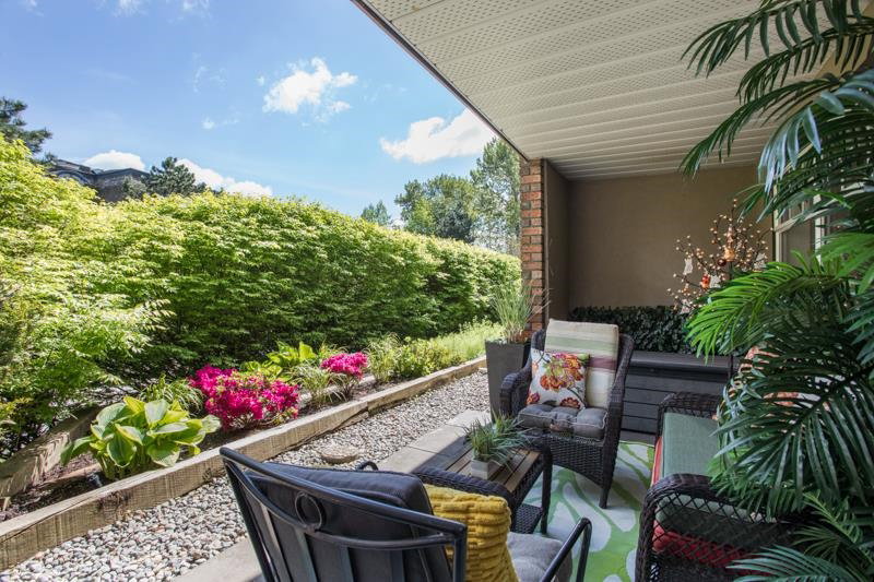 Gardeners, pet owners and nature lovers. Hidden at the end of a quiet street is an extra-large 2 bedroom corner unit with two garden patio spaces. Make the garden your own or leave it to strata. Step out your door for a walk in this very welcoming community. You’re spoiled by an expansive, serene greenspace backing onto Glenbrook Ravine Park, with secured, private access directly from the garden. This well managed building also offers an amenity room and rooftop deck. Inside, the living space is wrapped in windows with a lush, private outlook. Beautiful ensuite bathroom. Cozy modern fireplace. Work from home space. Extra space everywhere you look offers flexibility to arrange your home just the way you like. Come and see for yourself.