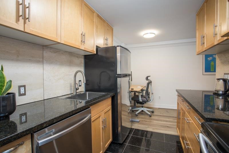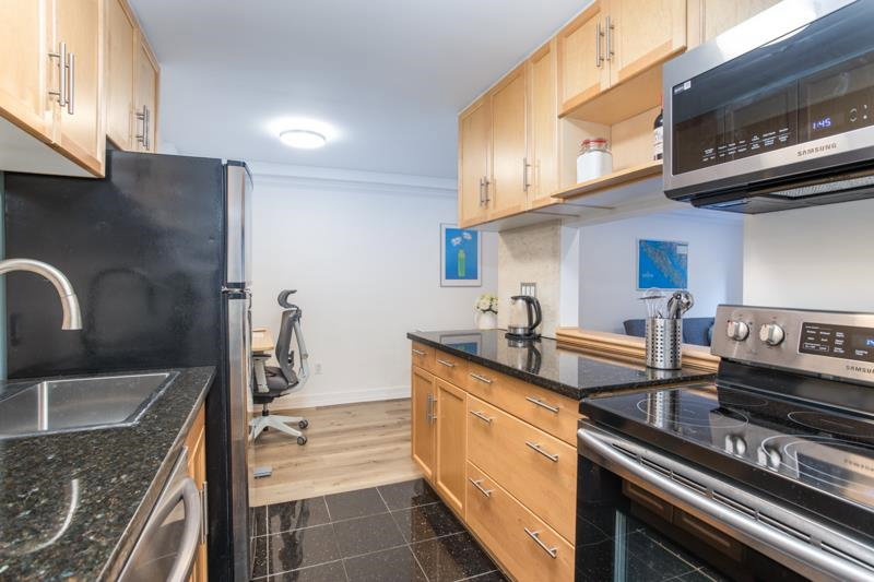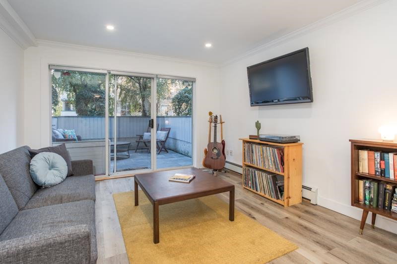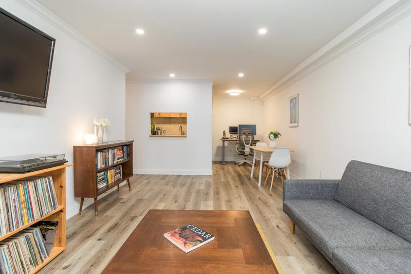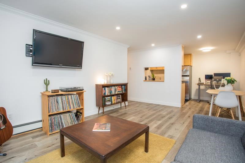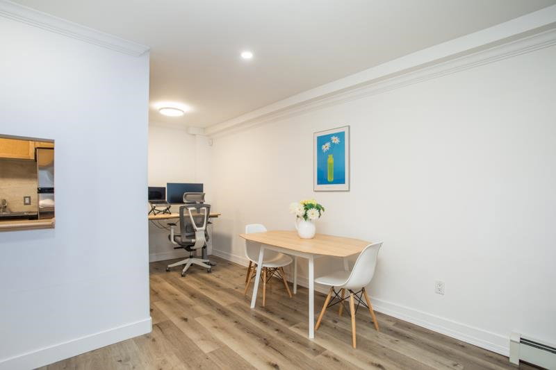 One bedroom ground-level unit in ultra-convenient Downtown New West. Renovated top to bottom. Literally – look up to see those smooth ceilings and crown molding. Updated flooring, modern lighting, kitchen and bathroom. Big and bright living room leads to a spacious southeast-facing patio, ideal for gardeners, sunseekers and your furry friends. Pet friendly building. Keep up to 2 pets with no size restriction on dogs. Long list of building updates includes: roof 2010, re-piped 2015, boiler and exterior paint 2018, elevator 2020. Maintenance fee includes heat and hot water. Downtown convenience. Solid building. Move-in ready home.