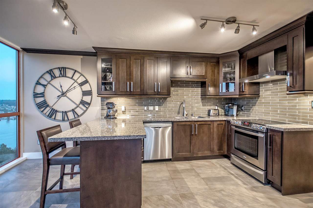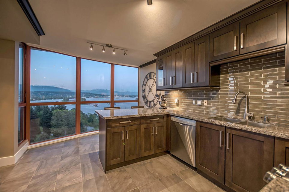 No stone left unturned! And by that I mean, this Sub Penthouse in the sky has been fully renovated with attention to detail in every corner. Fully updated from top to bottom: New kitchen (incl appliances), New Bathrooms, New Flooring throughout, Insuite Laundry with new Washer/Dryer, even new doors and mouldings. Open layout provides generous room sizes to accommodate house sized furniture. River or mountain views from all rooms. There’s literally nothing to do but move in. With all of the convenience of being located in downtown New West yet nestled on a quiet street and only 12 minute walk from skytrain and Columbia street amenities.