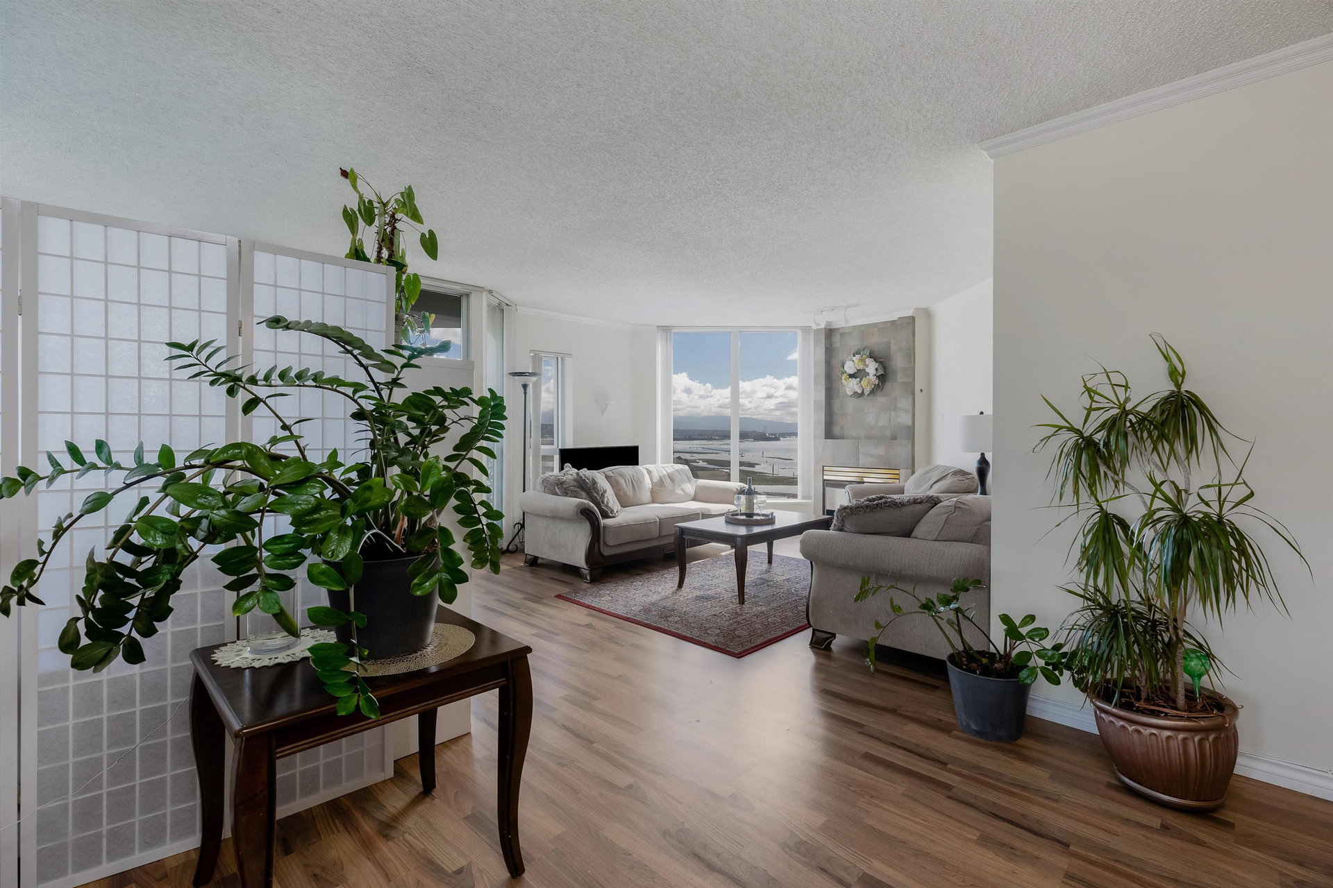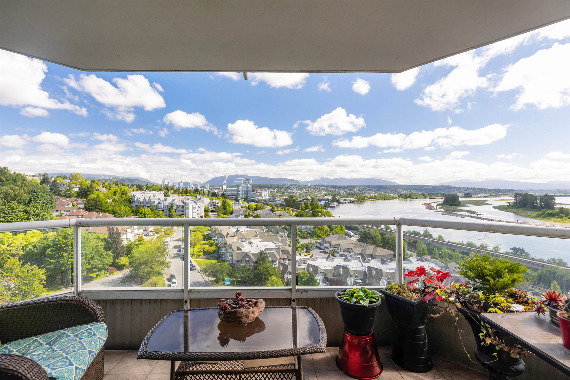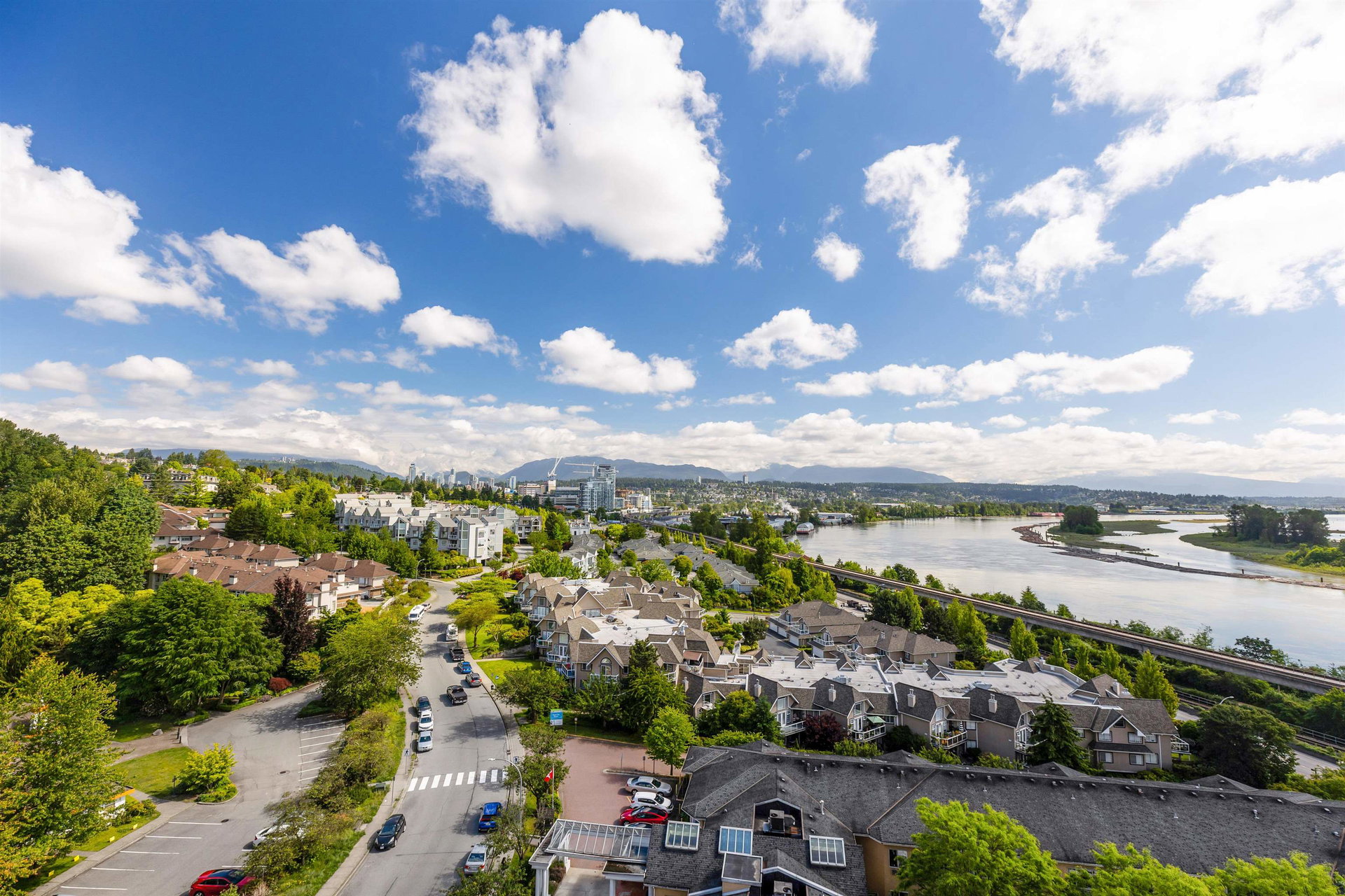 Welcome home to Palace Quay built by Bosa! Amazing corner unit with UNOBSTRUCTED Fraser river and mountain views! This popular ’02 layout feels like a rancher with a spacious and efficient layout. 3rd bedroom has been converted to open den. Building is well maintained & managed with newer roof, plumbing, elevators, paint & hallway upgrades. Fantastic amenities including indoor pool, swirl pool, gym & EV charging!Parking P3- #99; LKR -# 75