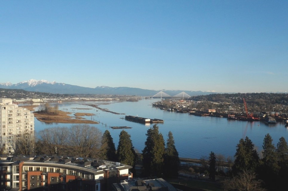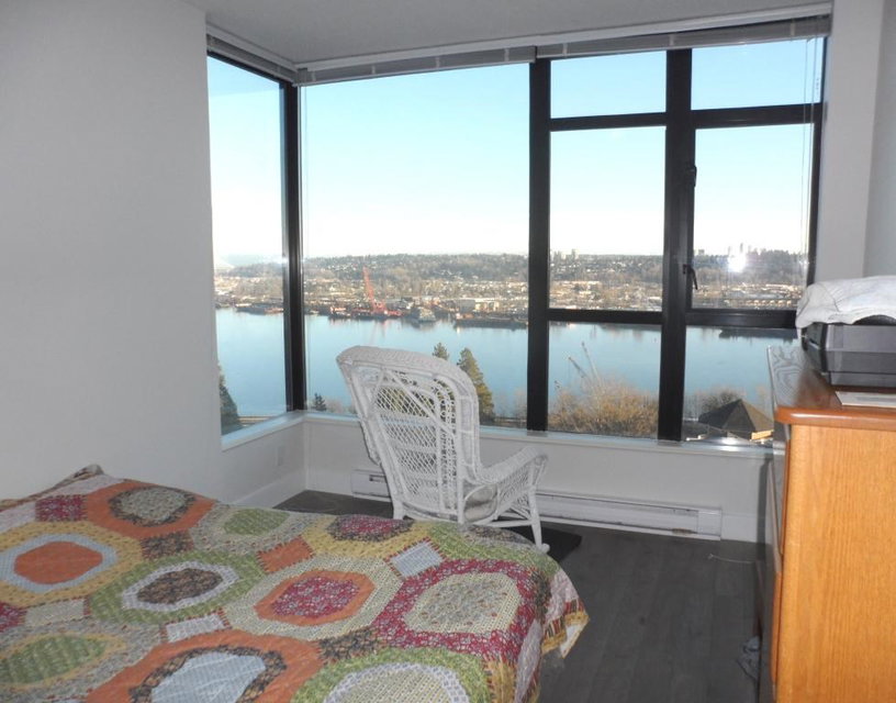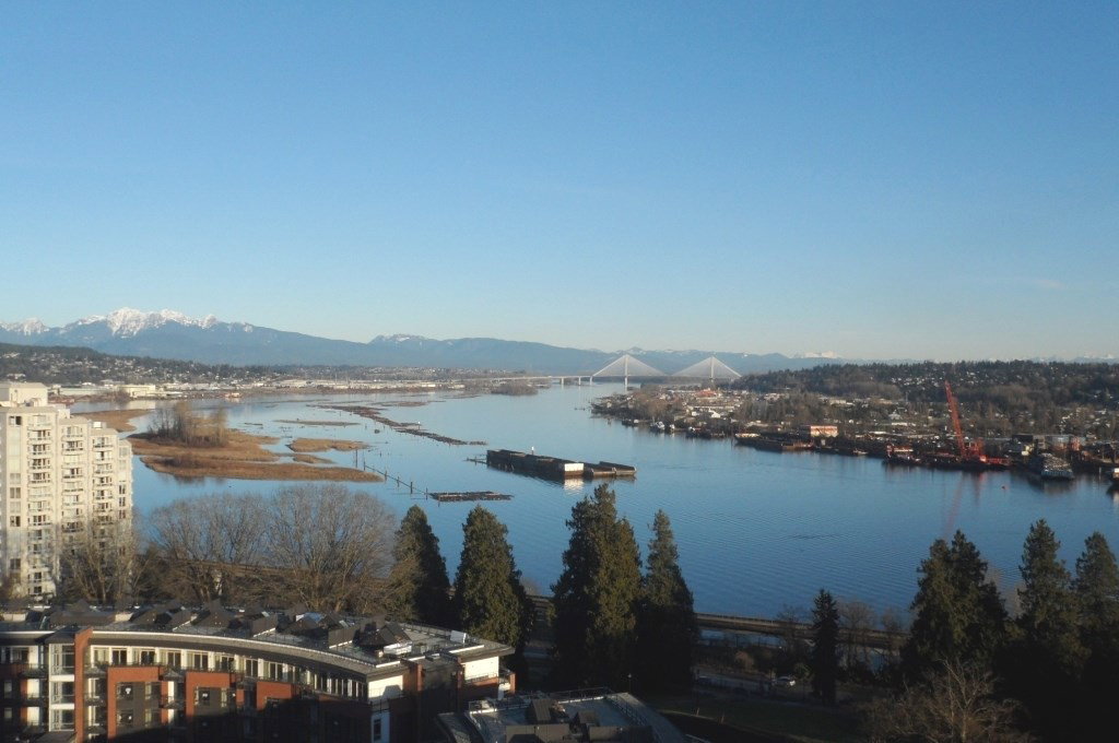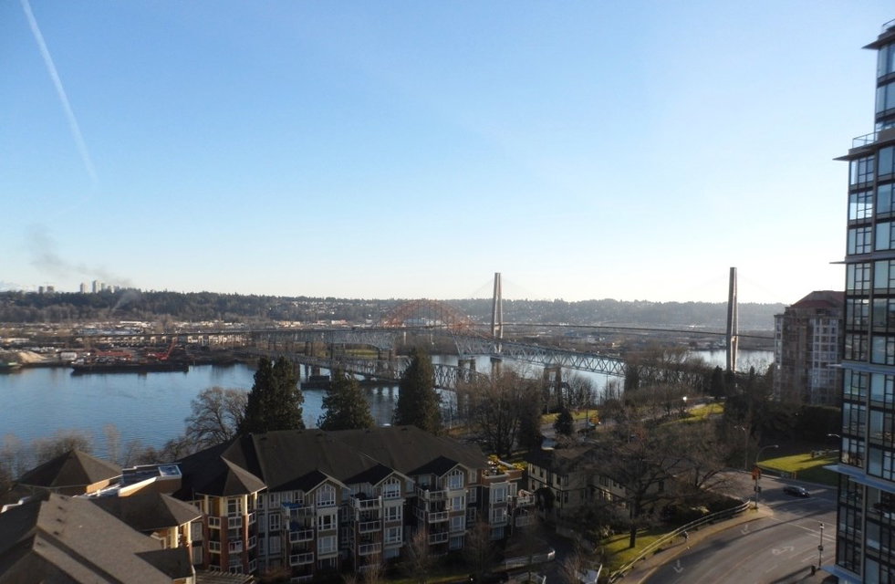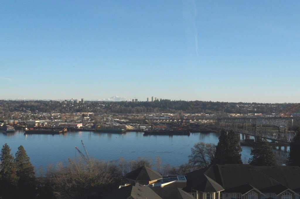 SPECTACULAR views and an excellent floor plan highlight this 1240 s.f. south-east facing 3 bed/2 bath condo in award-winning Victoria Hill High Rise Residences. River & mountain views from every room! All rooms are a good size. Features incl. over-height ceilings, stainless steel & granite finishes. New laminate flooring throughout & new full-sized washer/dryer. RESORT-style amenities incl: outdoor pool & hot tub, gym, sauna, party room, billiards room, library & 2 guest suites. Located in Victoria Hill, New West’s “park-like” community set amongst trails & greenspace yet easy access to all of downtown New West’s shopping, banks, pubs, restaurants & Skytrain. 2 parking stalls and 2 lockers (1 over-sized). Rentals & 2 pets allowed.