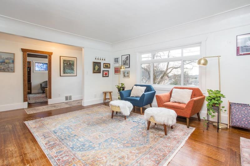Convenient West End of New West, showing off a desirable combination of 1936 character with modern conveniences. Large living and dining rooms for family to spread out and host events. 4 bedrooms, 2 full bathrooms for the main house. Open kitchen, chef’s dual-oven gas stove, large island and tons of storage. Soak in the charm of the coved ceilings, fir floors and brick fireplace. Separate laundry and a storage room for the main house. Registered 1 bedroom suite below with full set of appliances, including laundry. Walk to Skytrain, Lord Tweedsmuir Elementary and upcoming Rosemary Brown Arena. Good roof, drainage, electrical, plumbing. Main floor bathroom updated 2021. This very charming home has been well-cared for and will treat the next owner well. Contact your agent for an appointment.