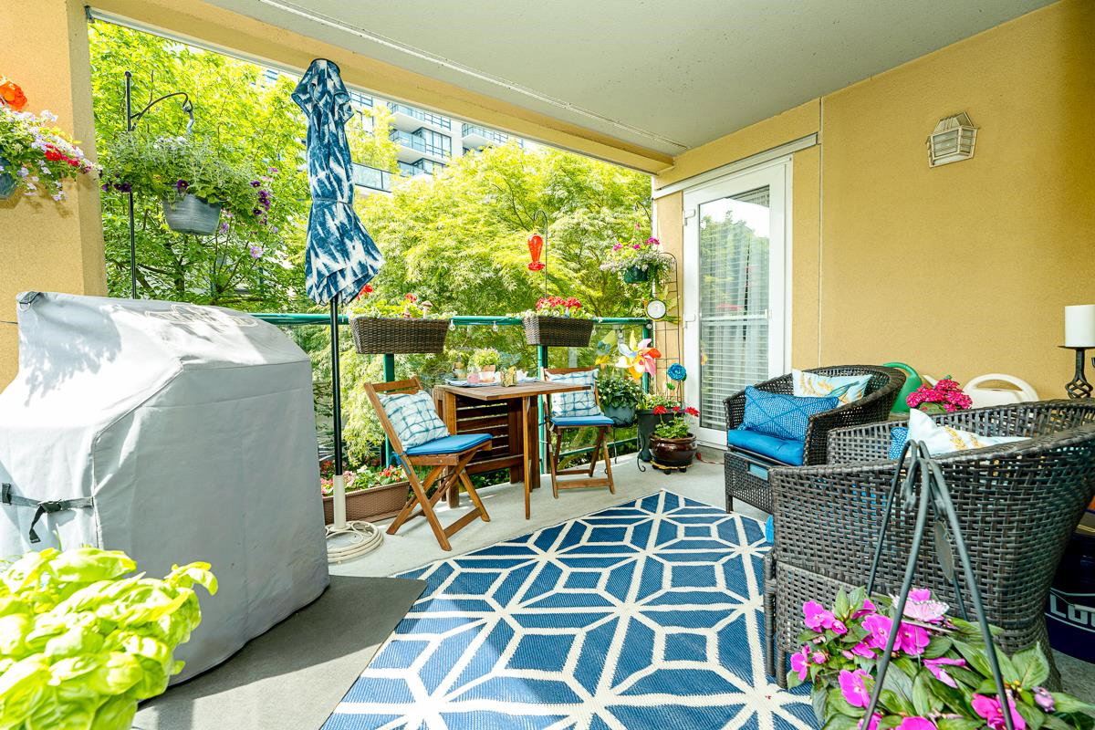 BEAUTIFUL 2 bdrm/ 2 bthrm condo! Over 1200sqft, this spacious unit offers a fantastic layout & a private separate entrance! This gem is nestled amongst the stunning gardens & lagoons of LAGUNA LANDING. This renovated condo is move-in ready w/ warm engineered hardwood floors, new blinds(2022) & updated bathrooms w/ a gorgeous tiled walk-in shower. Kitchen is a chef’s dream, featuring S/S appliances, new 2023 Samsung stove,2022 Whirlpool dishwasher, Silestone counters & ample counter space, LARGE pantry & office nook. Huge laundry can fit freezer & features 2022 GE wash/dryer. Excellent building recently re-piped, new fire panel, rain screened, fully equipped gym, secure visitor parking, resident caretaker. 2 Pets OK(close to off leash dog park)! Close to the River Boardwalk, Quayside Market, Parks, Skytrain, Transit!