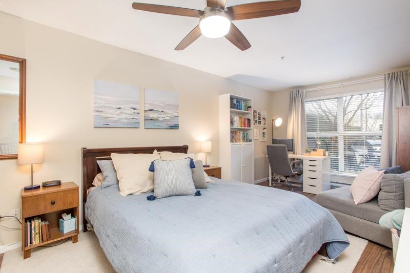 More than a 1 bedroom. You’ll want to take note of the extra interior space and a huge private patio (24’x17’). A unique floor plan with added space in the bedroom that might be a secluded area to read, workout or work from home. Not to take away from the living area, which is equally spacious. The giant patio is a rare find and it does not disappoint. Private, quiet and South-facing for sun-lovers and gardeners. Sapperton is a wonderfully convenient neighbourhood with a great mix of restaurants, coffee shops and more. Just a short walk to groceries, Sapperton Skytrain Station, and a park across the street. Pet-friendly (no size limit for one dog). Clean and move-in ready home. You’ll find it’s in excellent condition throughout. Contact your agent for a private viewing.