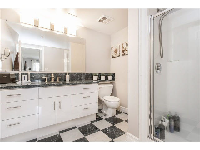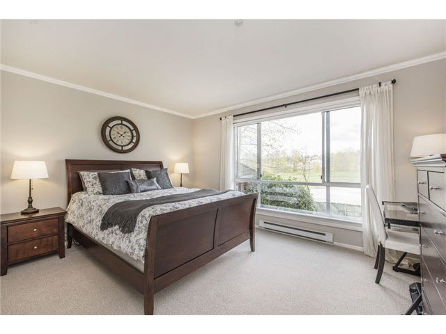 Stunning, move in ready condo on the Quay. This spacious 2 bedroom, 2 bathroom 1,213 sq ft suite stretches across the face of the building offering plenty of big windows pouring light into every room. West exposure keeps cool on sunny days & offers expansive views of greenery with no neighbouring buildings. Kitchen features stainless appliances, granite countertop and cherrywood cabinets. Tastefully renovated bathrooms, all updated flooring & light fixtures; professionally painted and crown mouldings throughout, plus very clever bottom-up blinds. Rainscreened 1998, re-piped 2001, ext paint 2014. Just steps to the board walk, dog park and shuttle to Skytrain.