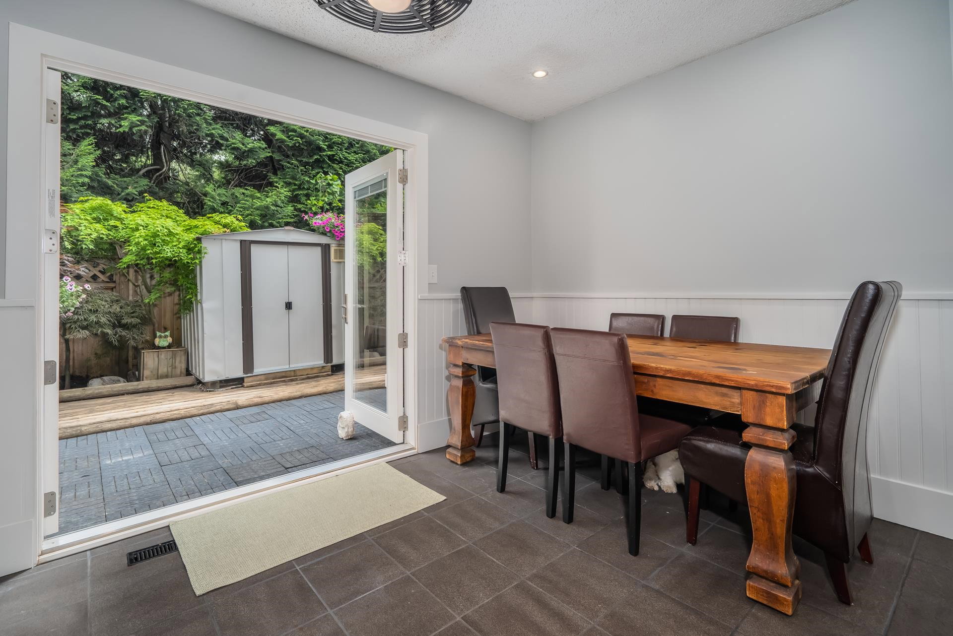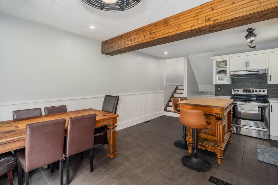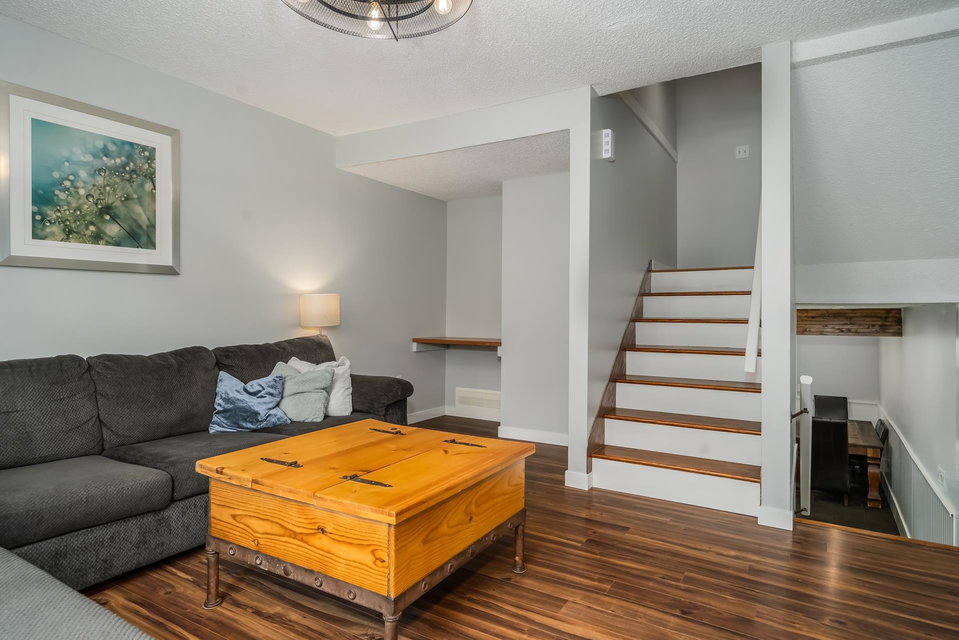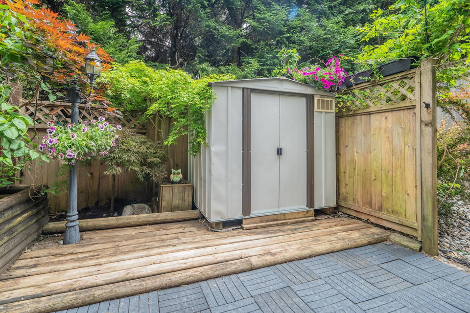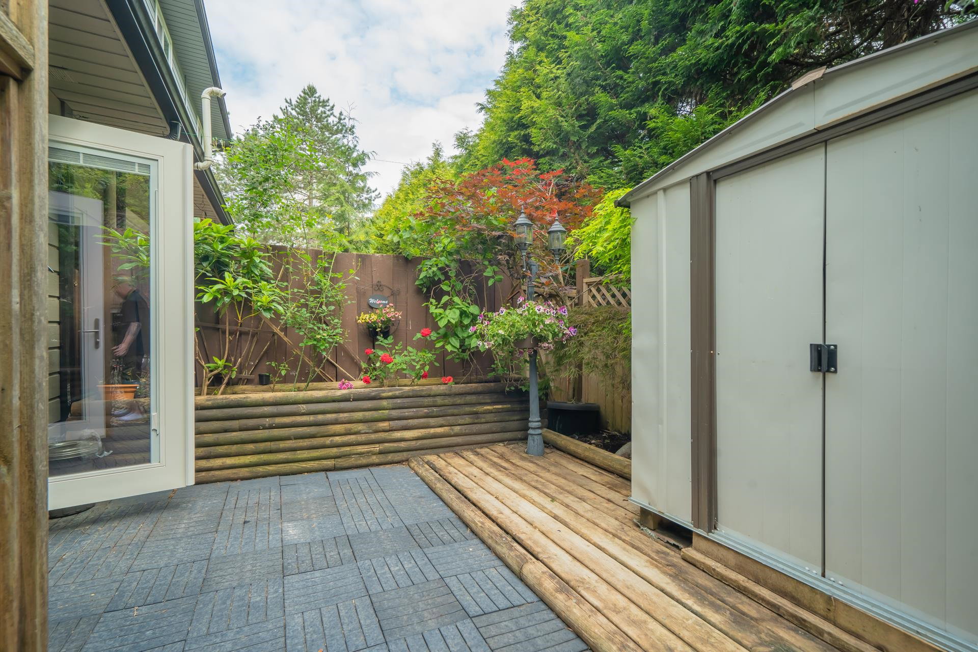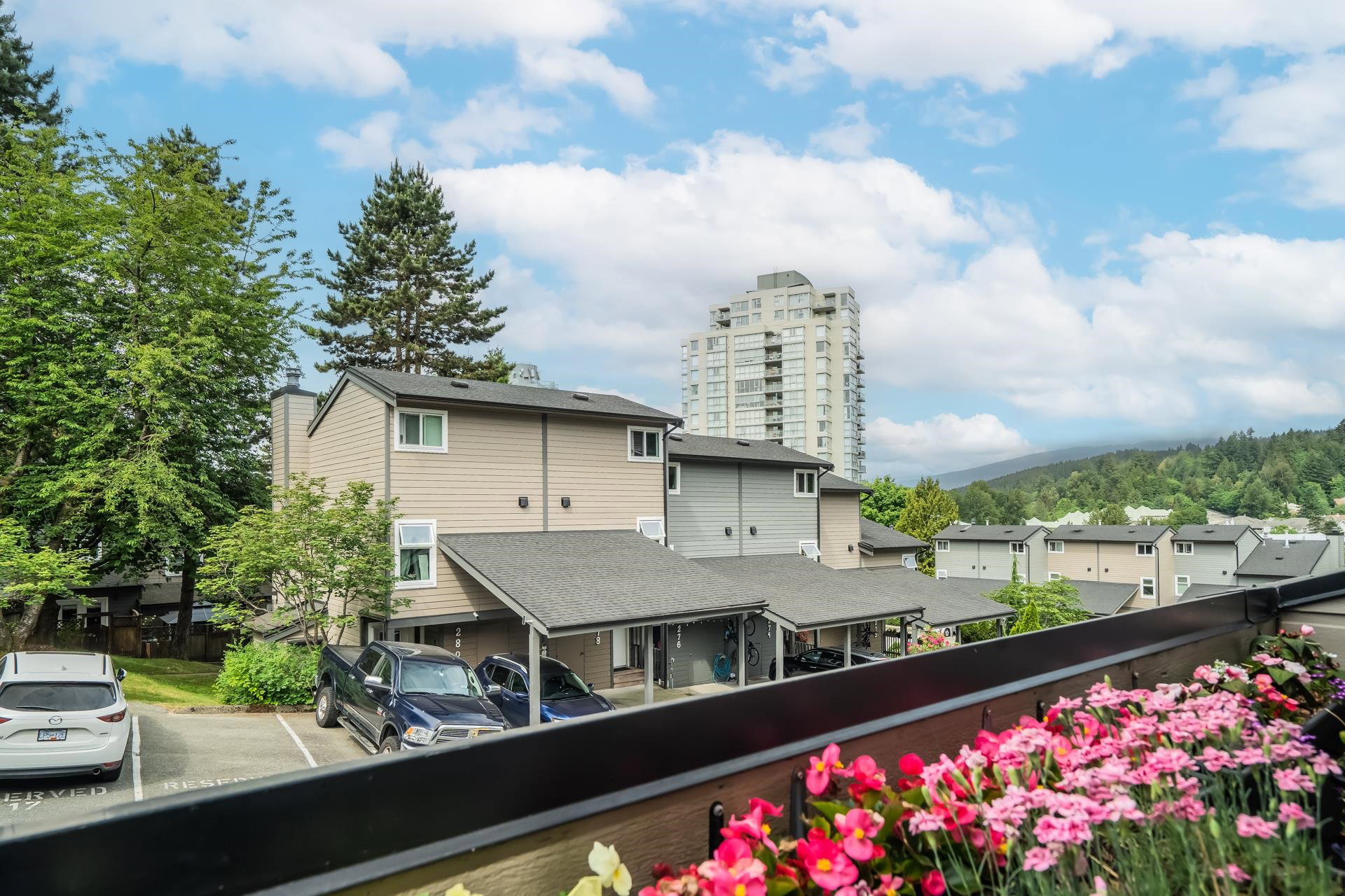 Renovated END UNIT townhouse at Balmoral Place! Family-friendly complex in a quiet location. Interior just repainted. Newly renovated kitchen with quartz counters. New blinds. Kitchen and dining area open up to private, enclosed East-facing patio backing onto trees. Mountain views from balcony off the living room. Air conditioning in the living room. Extended shed in the carport for extra storage. Upgraded vinyl windows. Centrally located in a beautiful community: walking distance to Inlet Centre Skytrain Station, shops & restaurants at Newport Village & Suter Brook Village, Port Moody Library, Port Moody Recreation Complex. Short drive to Rocky Point Park, Coquitlam Centre, Eagle Ridge Hospital. Only 40 minutes to downtown Vancouver. Complex has potential for future redevelopment.