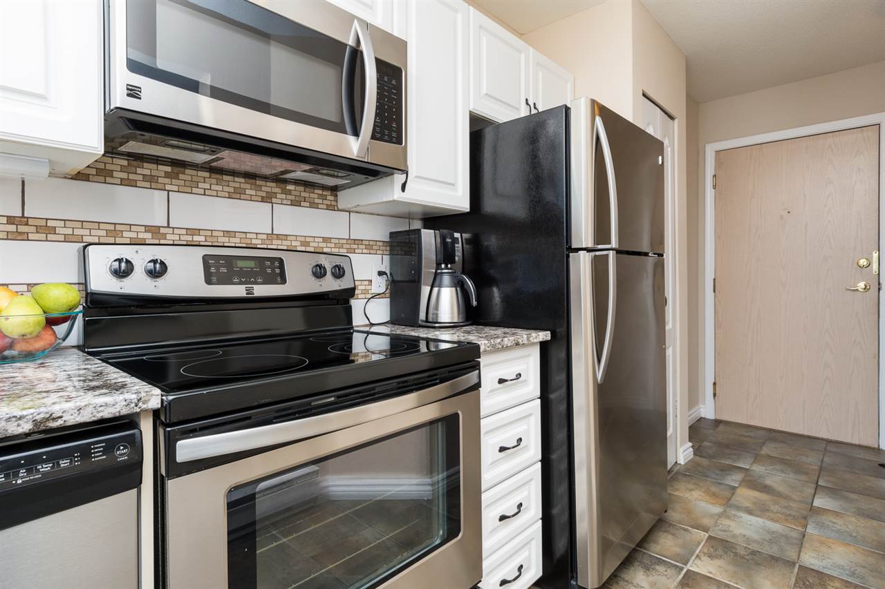2 bedroom corner unit with Mt Baker view in popular rainscreened building. Bright, spacious, gas F/P, 2 full baths, 2 prkg. Fast-developing area, walk to schools, shops, Skytrain. Granite countertops, stainless steel appliances, new flooring. Freshly painted, beautiful condo!