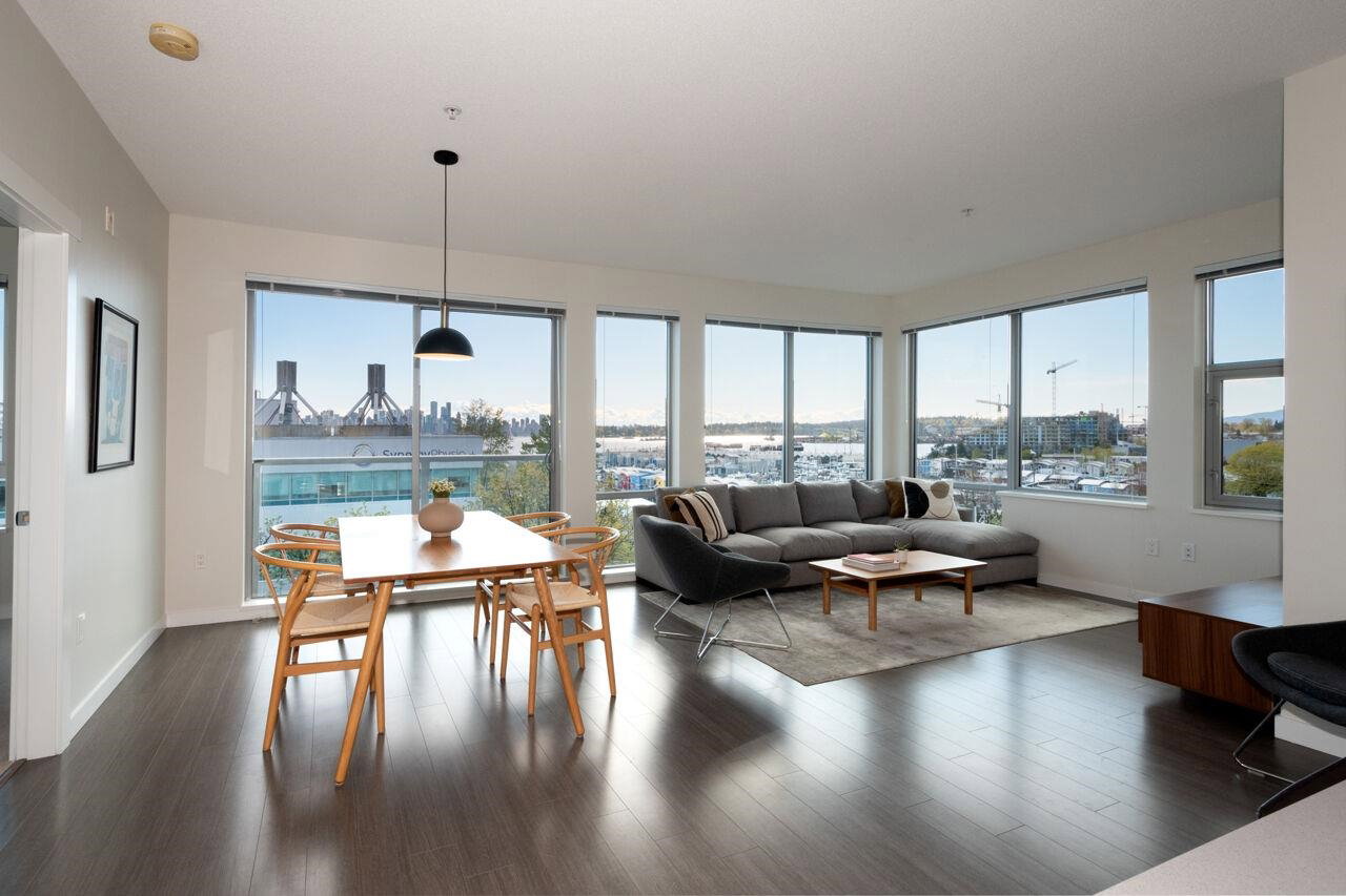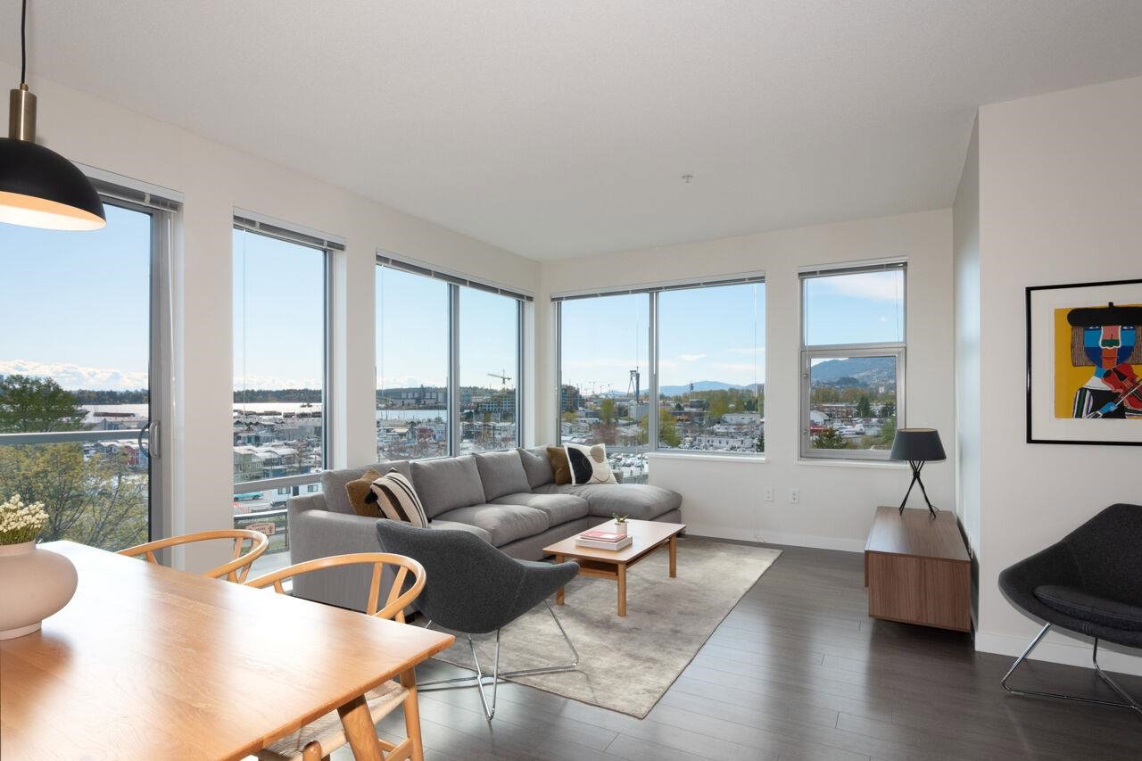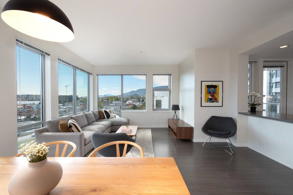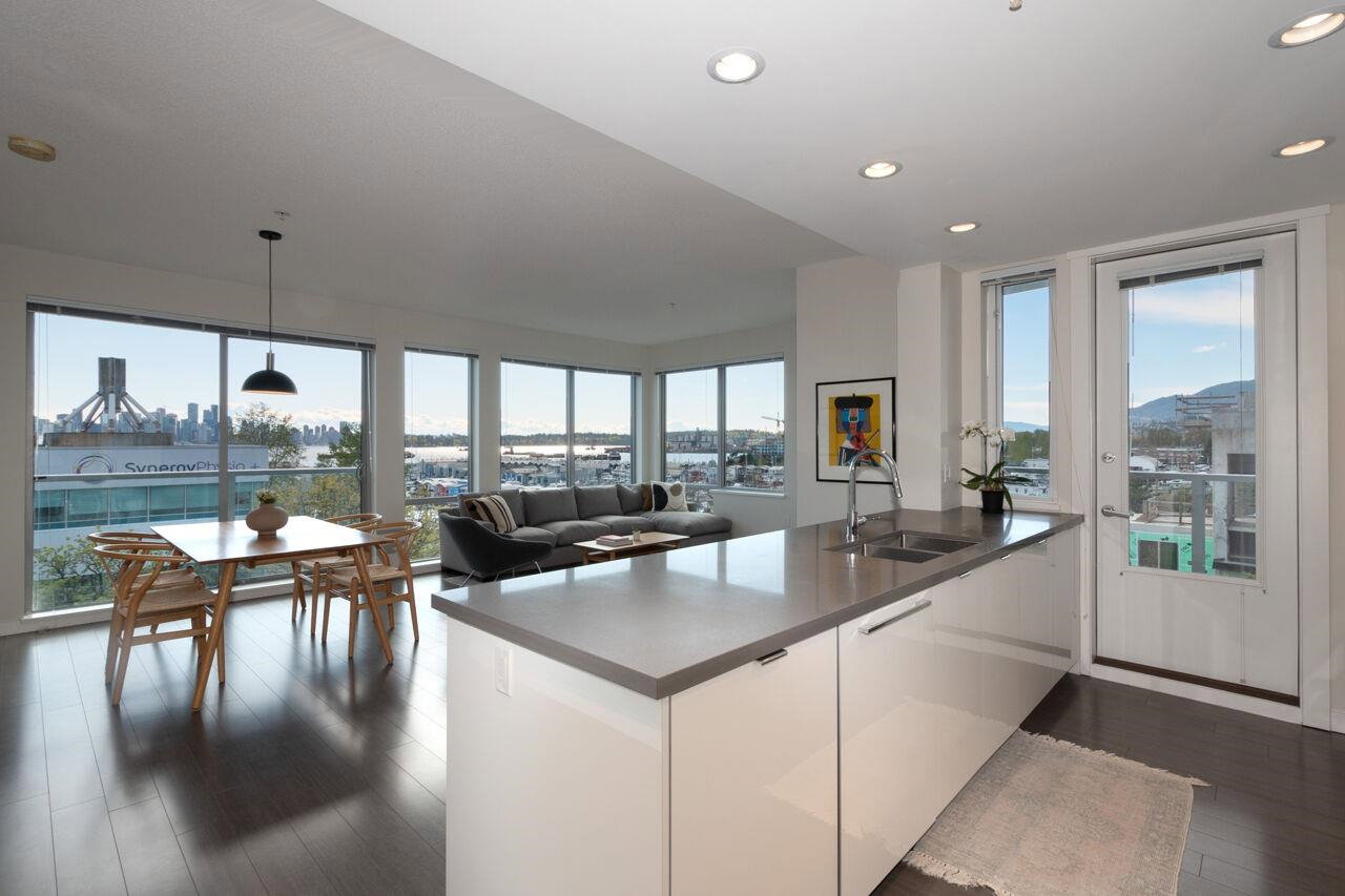 Welcome to the popular West Quay building by Polygon! This is a rare South West corner unit offering panoramic city & ocean views. This 2 bedroom and 2 bath is sure to impress with a contemporary design, an open concept floor plan with over height ceilings for lots of natural light, gourmet kitchen with stainless steel appliances & breakfast bar. Formal living & dining areas off the kitchen offer a perfect entertaining space. Primary bedroom features a walk-in-closet & 5pc ensuite. The second bedroom is large and nicely separated from the primary. Featuring a covered patio and a Juliet balcony to enjoy the views. Situated in the desirable LoLo neighbourhood just steps to restaurants, cafes, transit & Seabus. Pets & Rentals are welcome. Quick possession available.