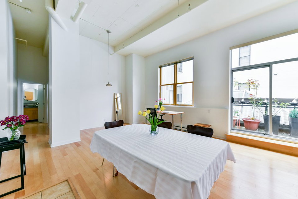 This is downtown New West living at its best. Everything you need is right outside your door. C2C Lofts are a unique true heritage loft conversion rich with character and history. This unit boasts 13’ ceilings and beautiful over-sized heritage style windows. Many updates inside, including engineered hardwood, appliances and granite counter tops. This 1000 square foot open plan offers maximum layout and decorating versatility. Bonus in suite laundry and storage room, also with 13 foot ceilings. Pet friendly building. Floor plan and detailed video walk-through available.