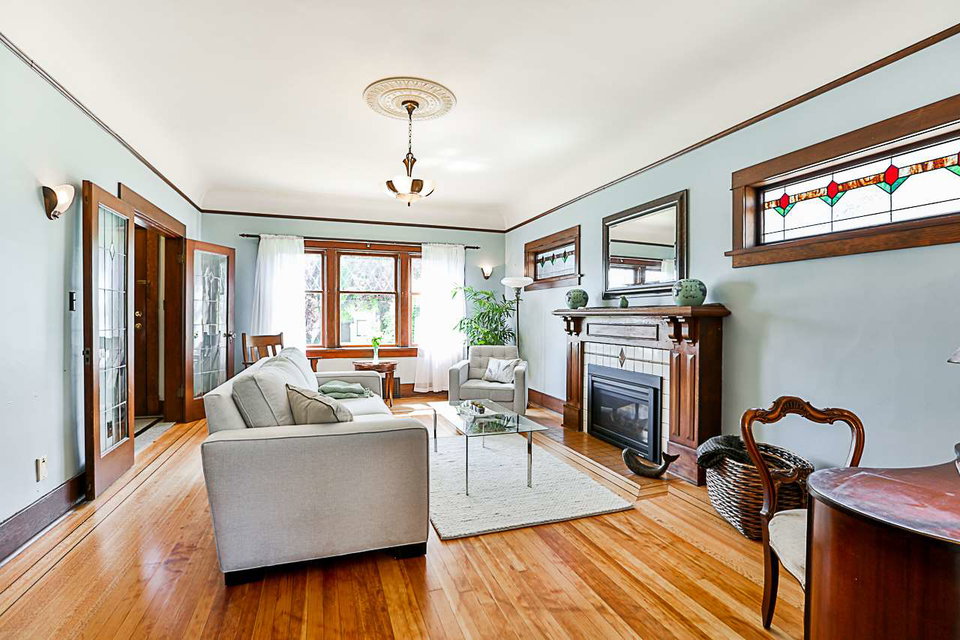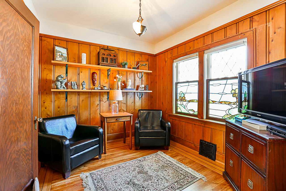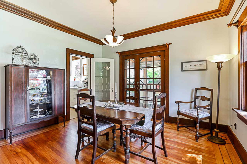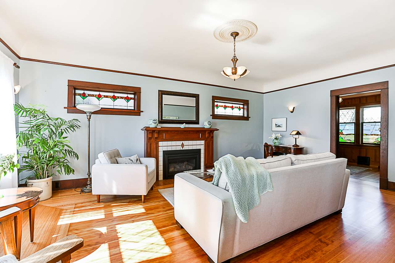 Beautiful 3 level 2594 sq ft, 3 bdrm + den, 1.5 bath character home on lovely tree lined boulevard street in the heart of Queens Park close to parks, school, shopping & transit. This immaculate bright & spacious home features gorgeous refinished hardwood & softwood floors, extensive antique art deco, period lighting, original wood doors & trim, high ceilings, generous room sizes, leaded & stain glass windows, refinished wood paneling in den, wood French doors, gas f/p in LR & more. Great layout with 3 generous bdrms up & good height rec room, utility & storage down. Fenced yard, lovely patio with arbour, oversized single garage, workshop & shed.