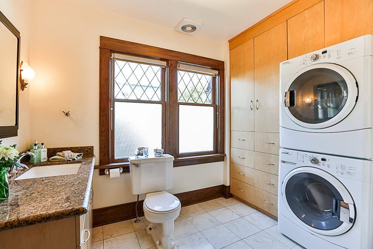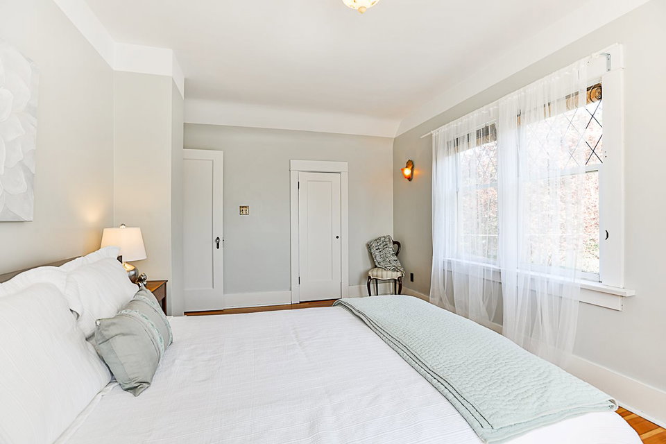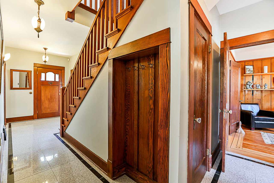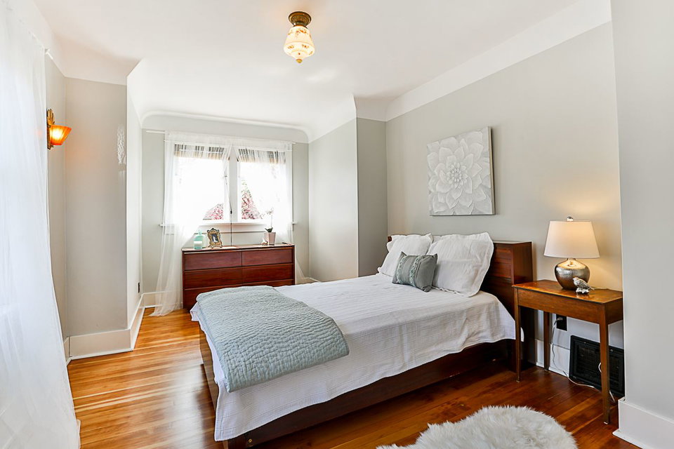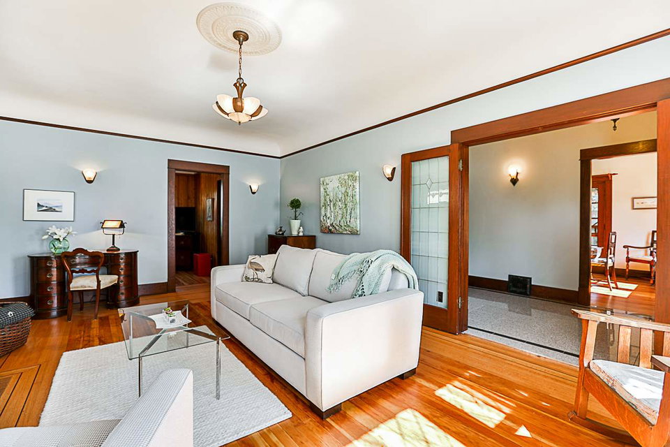 Beautiful 3 level 2594 sq ft, 3 bdrm + den, 1.5 bath character home on lovely tree lined boulevard street in the heart of Queens Park close to parks, school, shopping & transit. This immaculate bright & spacious home features gorgeous refinished hardwood & softwood floors, extensive antique art deco, period lighting, original wood doors & trim, high ceilings, generous room sizes, leaded & stain glass windows, refinished wood paneling in den, wood French doors, gas f/p in LR & more. Great layout with 3 generous bdrms up & good height rec room, utility & storage down. Fenced yard, lovely patio with arbour, oversized single garage, workshop & shed.