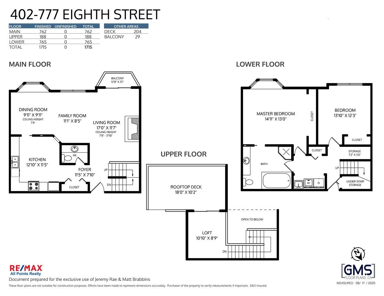Three levels. 1,715 square feet. This is bigger than a lot of houses. Entrances on both the 3rd floor and the 4th floor. Your main living is in the middle. Head down for the bedrooms and go up for the loft and a spacious, sun-drenched rooftop deck. Featuring multiple skylights and vaulted ceiling for an expansive light and airy feeling. Floor plan available to help map it out for you. Central Uptown New West location is very walkable, across the street from the new high school, easy access to transit and the Crosstown Greenway cycle path. It’s the full package, including 2 parking spaces and a storage locker. Detailed video walk-through available at: https://youtu.be/8gR4jInqe60