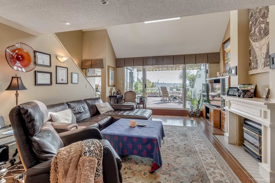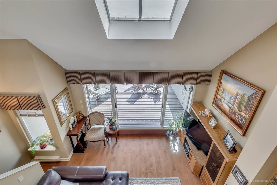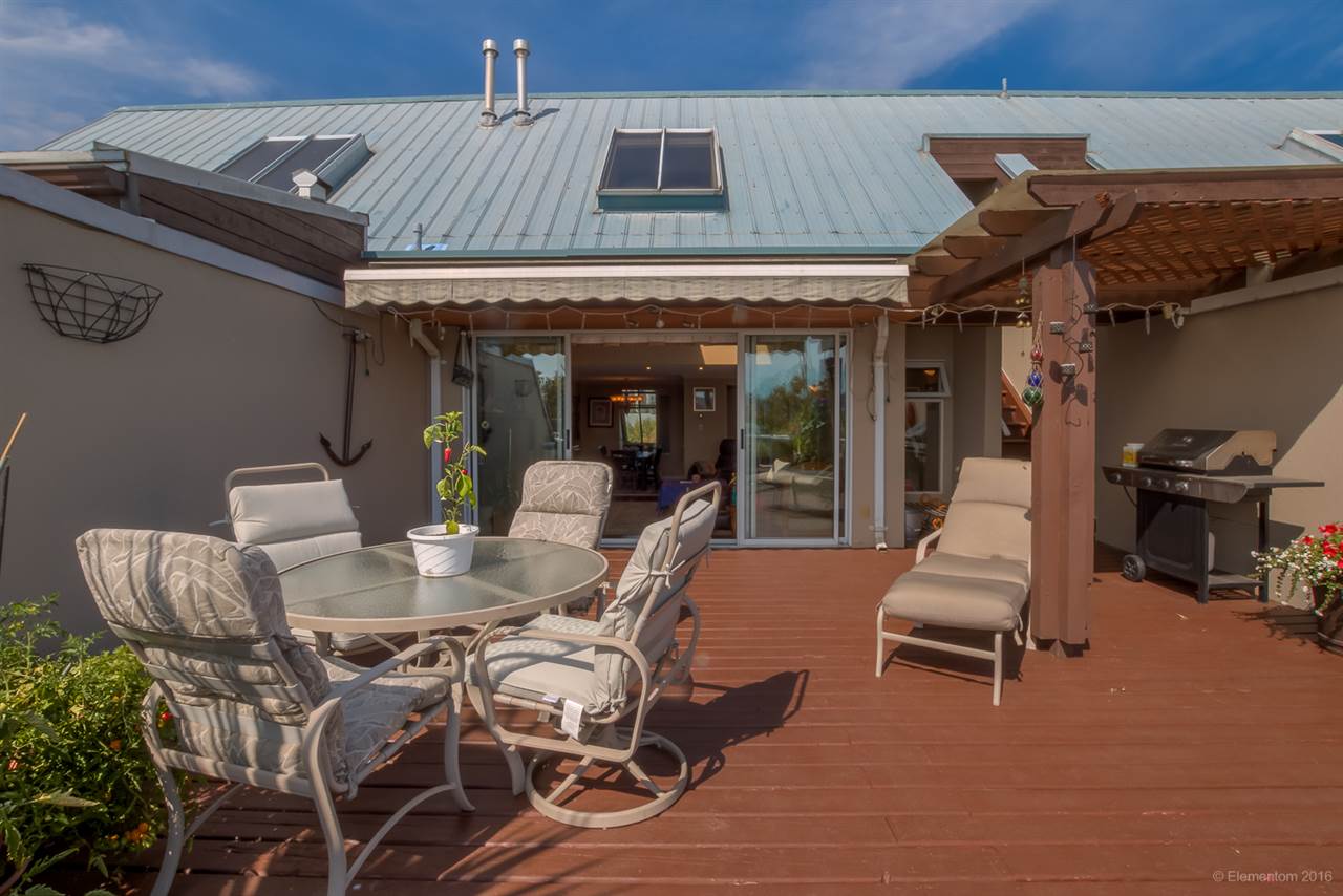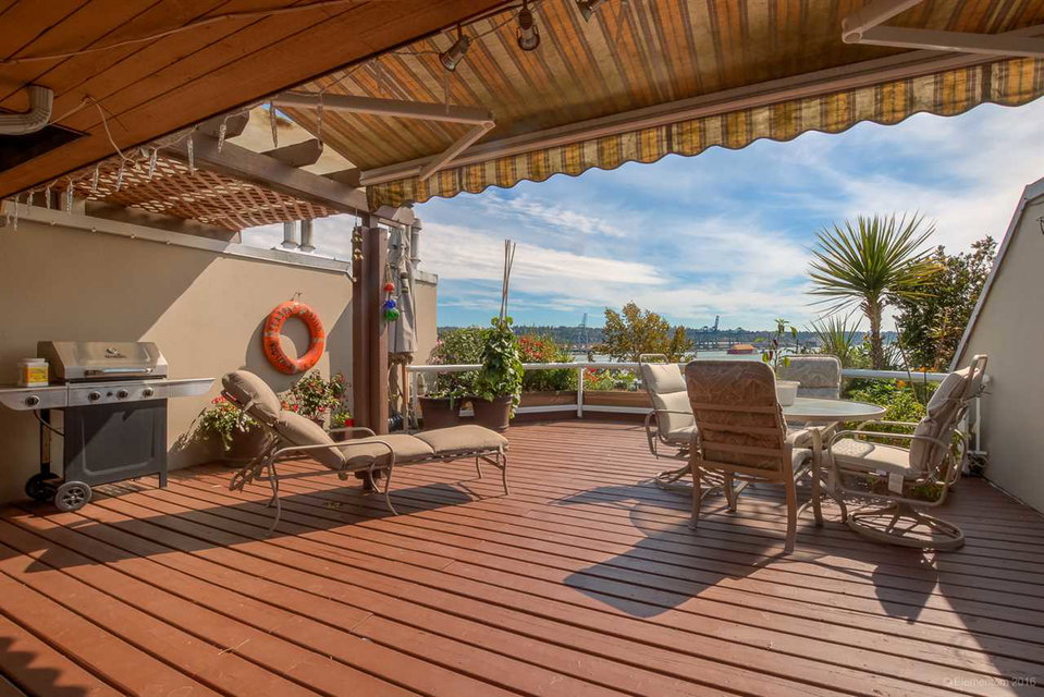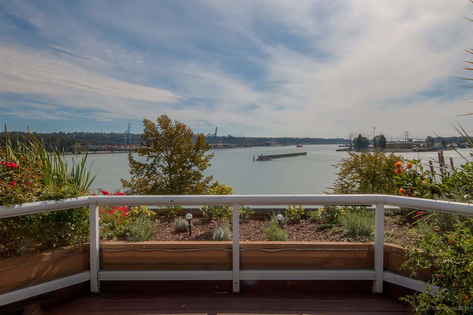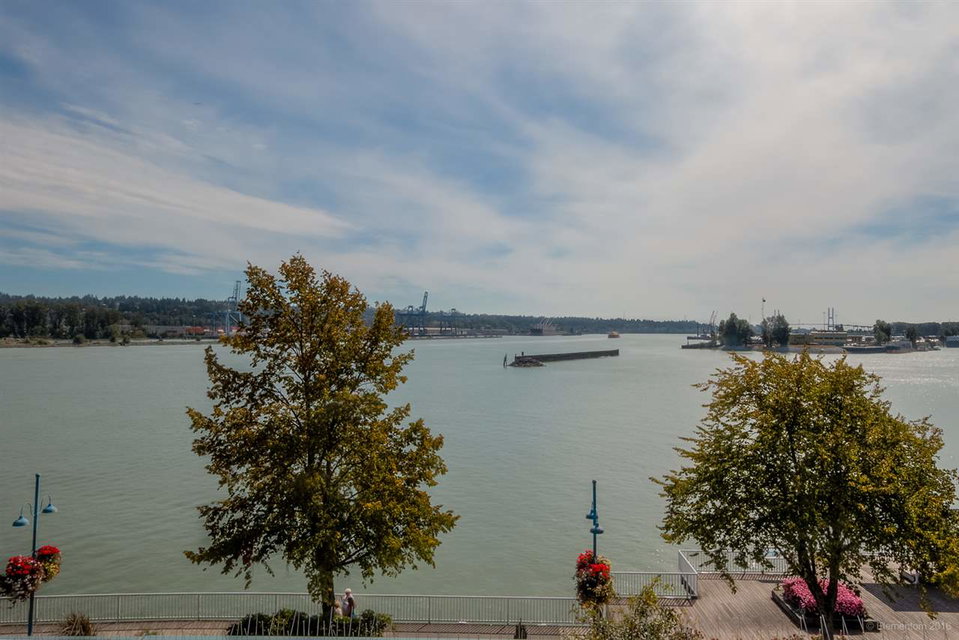 Impressive & rare, 3 level PENTHOUSE condo at the Quay w/panoramic sunny Fraser River views! Updated, move in condition 2 bedrm, 2 bathrm, almost 1500sqft, offering maple H/W firs, newer lighting, crown moldings, s/s appliances & corian countertops. Livingrm w/vaulted ceilings, skylight & gas f/p w/sliding doors to massive 400sqft rooftop sundeck w/garden area & electric awning. Diningrm off kitchen plus huge storage/pantry adjacent to kitchen & 2pce bathrm. 3rd level offers huge loft overlooking livingrm. Lower level has masterbdrm w/4pce ensuite & built in wall unit queen bed & 2nd bedrm has built in murphy bed. Sliders off both bedrms to north balcony. 1 yr washer/dryer. Near all amenities. See VIDEO at agent website. Call now!