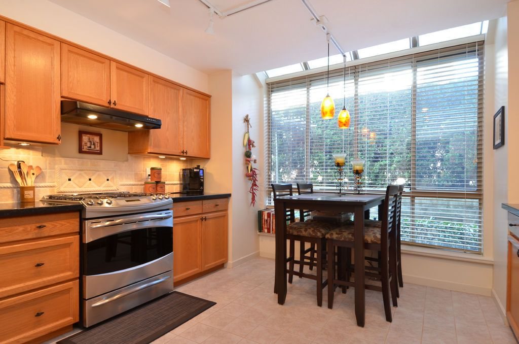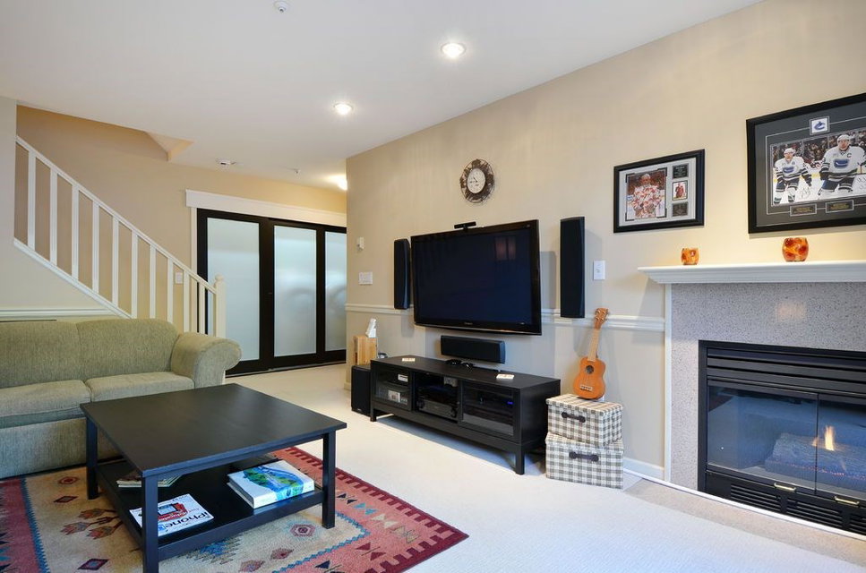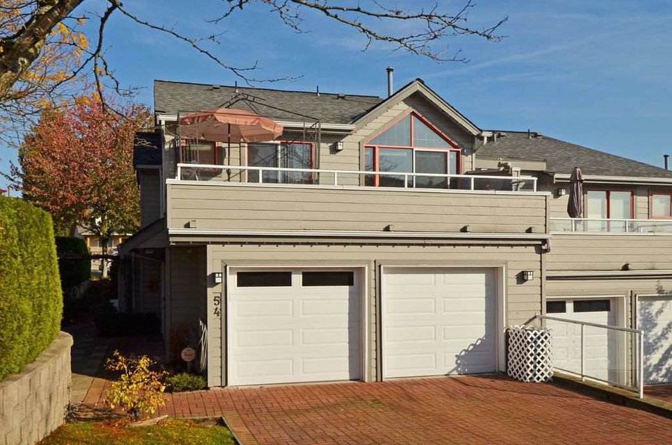 This is a private end unit oasis perched at the top of the complex. You’ll know it’s something different as you approach the private side entrance featuring a calming water feature. Over 1000 sf (2365 sf total) on the main floor will entertain the largest gatherings w/ full size dining & living room, featuring gas F/P. Large kitchen highlighted by black granite, new appliances & recent conversion to gas range. Multiple balconies offer different perspectives, including expansive views of the Fraser River. Upstairs offers 2 good size bdrms & a stunning master suite w/ private balcony, W/I closet & full ensuite featuring heated towel racks. 4th bdrm below & media room which steps out to the large yard w/ garden beds, fully private patio & natural gas connection for the BBQ. 19+ complex.