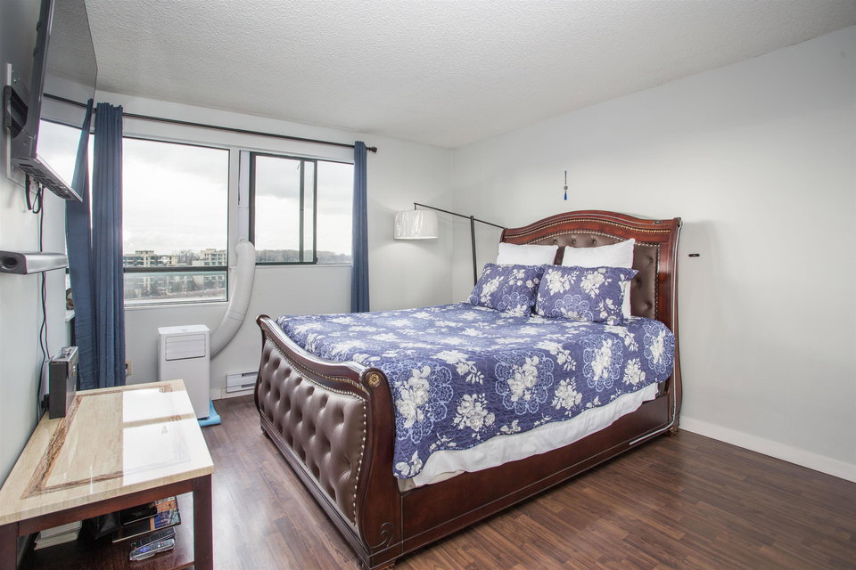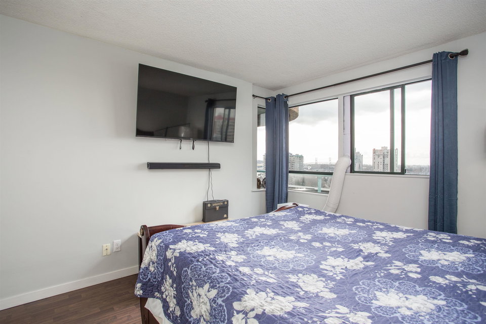 Downtown New West with a view. Large (651 sf) one bedroom unit offers flexibility for home-office or hobbies. Expansive and private view looks SW to the Quay and Fraser River. Take it all in from an over-sized (15’x9’), covered balcony with plenty of space – easily fit a lounge set, bbq and your yoga mat. Inside, throughout you’ll find it all in good condition, ready to move in. 13 storey tower, built in 1984. Full updates to plumbing (2011), elevators (2016) and parkade membrane (2021). Amenities include bike room, rec room/gym, and outdoor pool (updated 2013). Parking and storage included. Convenient access from both Queens Ave and Auckland St make for a short trip to Skytrain and Downtown New West shops.