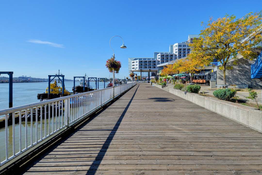 Outstanding value for 1,540 sq ft, 3 bedrooms, 2 bathrooms and den. Bright and spacious throughout with plenty of space for a family or downsizer. Good sized bedrooms, large living area, kitchen. Updated throughout including all new lighting, new hardwood floors, updated bathrooms, updated kitchen with new appliances. Quality work all along the way for peace of mind. Just move right in. Great location on the Quay with easy access to transit, shops, boardwalk and River Market. Rentals allowed. Small pets allowed. Well run, proactive strata with a full complement of properly maintained amenities. Inside and out this full size condo will give you peace of mind for many years to come. OPEN HOUSE SUNDAY, SEPT 25 FROM 3-5 PM