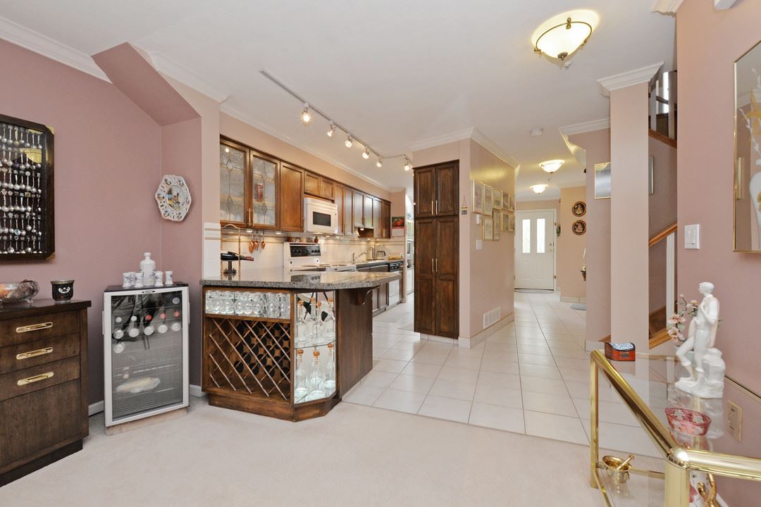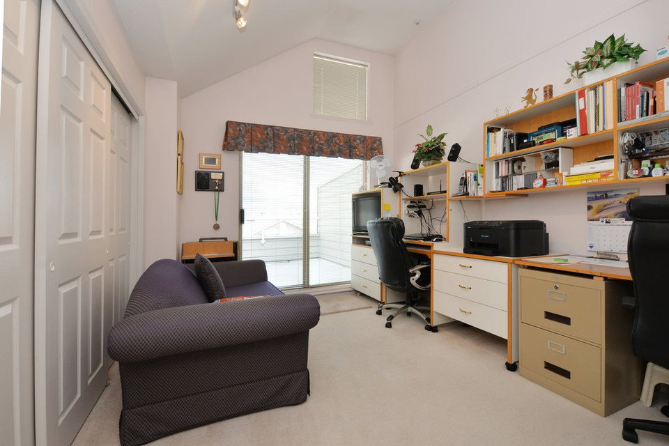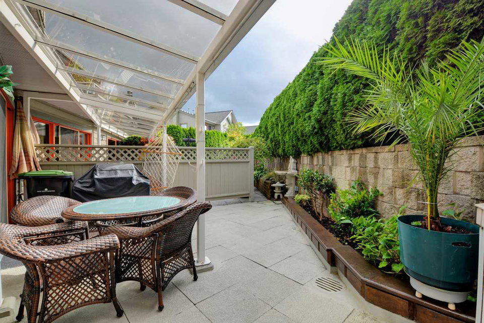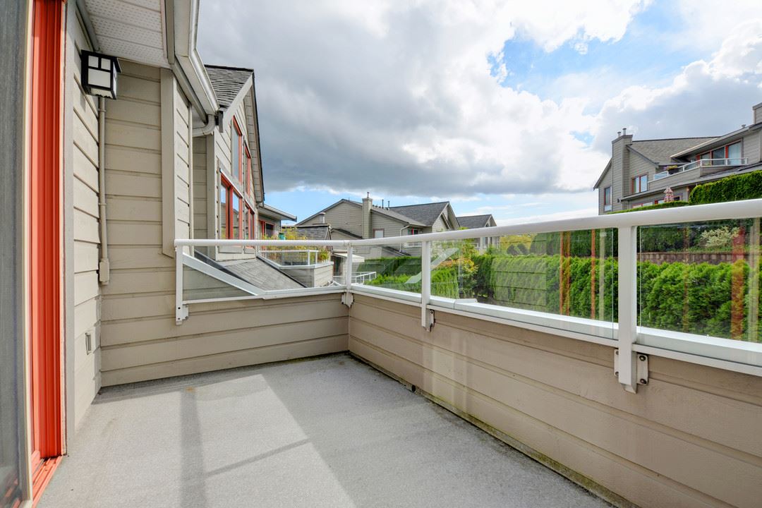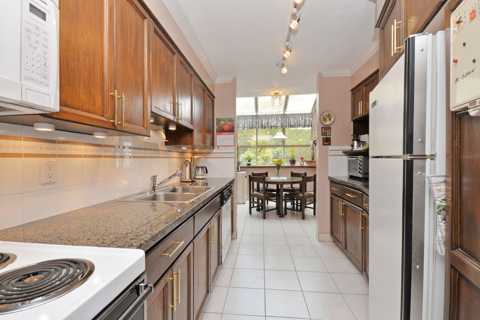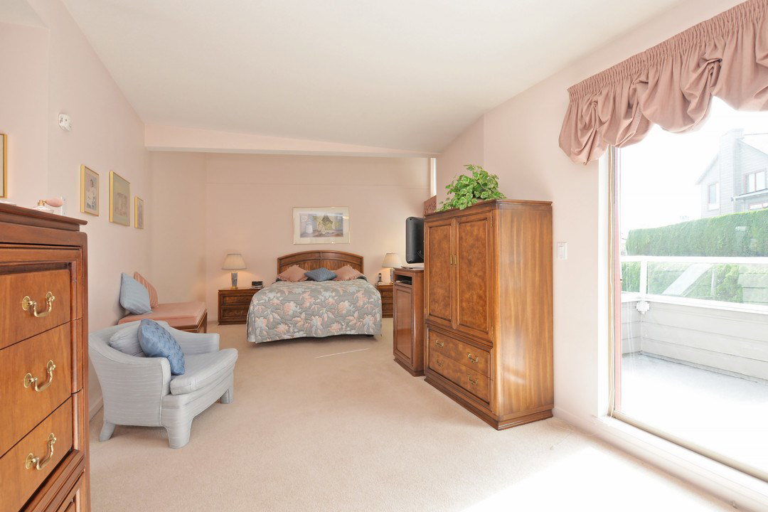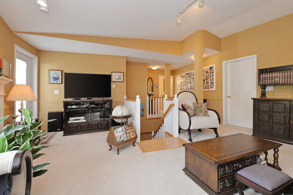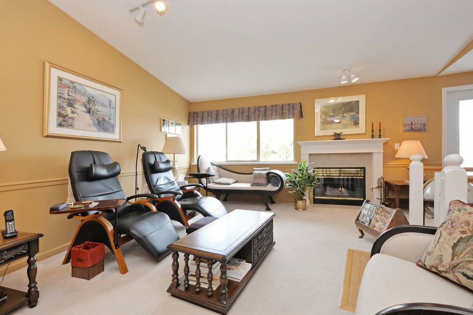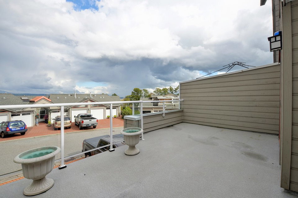 Spacious 2,205 sq ft 2 level townhouse. Main level entry with extra large principal rooms for all your furniture. Living and dining room step out to your private, partly covered patio. Lots of storage in the kitchen, plus pantry/storage room on the main floor. 2 bedrooms upstairs plus spacious family room with access to large balcony. Master suite has full ensuite with separate tub and stand up shower plus peaceful, sunny and private balcony. Only one owner and exceptionally well maintained. Radiant in-floor heating (boiler approx 5 years old). Double garage and space for 2 more outside. Adult oriented strata, 19+. Quiet community, with close proximity to Sapperton Skytrain and shops.